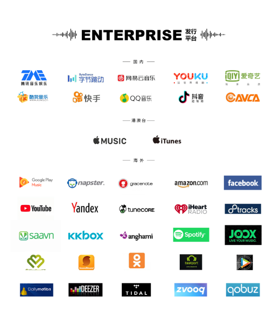 我们的全球分销可以在12小时内完成。与往常不同的是,我们免费分发,艺术家可以享受85%的收益。 主要是我们发行的每一部作品都会在中国流媒体进行小规模的营销推广(流媒体歌单,流媒体资源位,抖音视频内销推广)。 一旦营销数据可观,我们将加大我们在营销和宣传方面的力度。